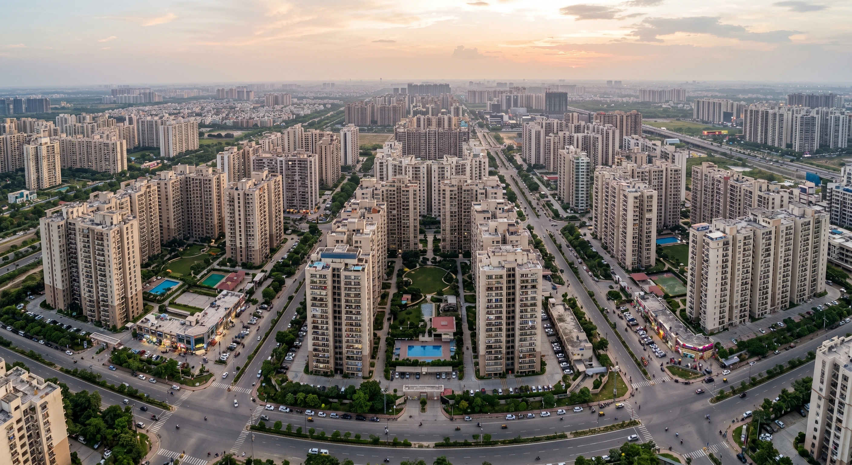 On price, Greater Noida West averages roughly ₹8,650/sq ft today, versus about ₹12,550/sq ft in central Noida sectors and ₹14,500/sq ft in premium Noida corridors. Useful context when you want more carpet for the same ticket. When you are ready to compare live inventory, start from properties in Greater Noida.
